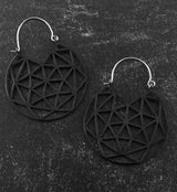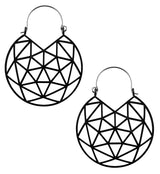 Stainless steel hangers / earrings with a geometric, stained glass looking design. Size is 20G with a height of apprx. 63mm and a width of apprx. 45mm. Made from black pvd on 316L stainless steel. Sold in pairs (2pcs).
