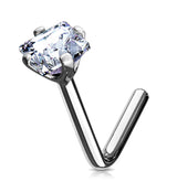 20G Clear Square CZ 14kt White Gold L Bend Nose Ring