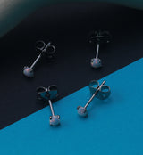 Stunning white opalite prong set in titanium that will shine in the sunlight and give off an array of colors. Available in 3mm and 4mm opalite. Size 20 gauge. Sold in pairs (2 pieces). Free domestic shipping on orders over $20.