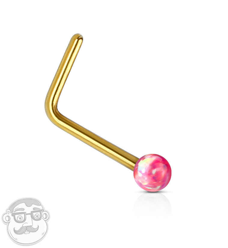 20G Red Opalite 14kt Gold L Bend Nose Ring
