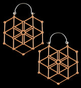 Stainless steel hangers / earrings with a geometric design and a rose gold color. Size is 20G with a height of 70mm and a width of 50mm. Made from rose gold pvd on 316L stainless steel. Sold in pairs (2pcs).