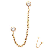 24kt Gold PVD Clear CZ Connector Nose/Cartilage Rolo Chain Threadless Tops