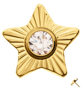 24kt Gold PVD Score Star Clear CZ Threadless Titanium Top