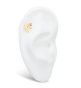 Threadless top made from 24kt gold pvd on ASTM F136 titanium in a crescent moon shape and accented with a 2mm clear cz gem. Sized at 9mm x 6mm. Fits all threadless posts. Pin size is 25G. Sold individually (1 piece - top only).