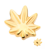 Internally threaded top disk with a hemp leaf design. Made from 24kt gold pvd on ASTM F-136 titanium. Top size is 6mm x 6mm. Size is 16G. M0.9 threading. Sold individually (top piece only).