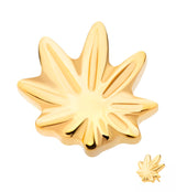 24kt Gold PVD Hemp Leaf Threadless Titanium Top
