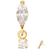 24kt Gold PVD Marquise Clear CZ Dangle Titanium Threadless Top