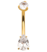 24kt Gold PVD Prong Teardrop Clear CZ Titanium Belly Button Ring