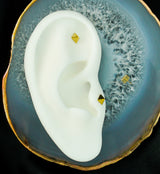 Made with 24kt gold pvd on ASTM F-136 Titanium, this top is sold individually and designed to fit most threadless posts. Its 25G pin size ensures an easy insertion. Fun top piece to add to your threadless jewelry collection!