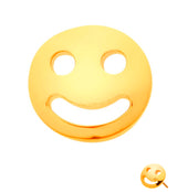 Smiling threadless top piece that has a smiley face design. Made from 24kt gold pvd on ASTM F-136 titanium. Measures about 5.8mm x 5.5mm. Fits most threadless posts. Sold individually (top piece only).