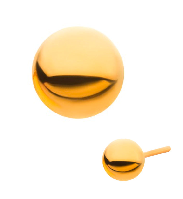 Sphere shaped threadless top piece. Made from 24kt gold PVD on ASTM F136 titanium. Choose your ball top size: 4mm, 3mm, 2.5mm, 2mm. Sold individually (1 piece - top only).