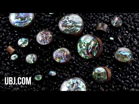 Complete your unique style with these beautiful abalone shell inlay wood plugs. Made from areng wood and featuring a smooth surface, these double flared plugs are available in 8G (3mm) up to 2" (51mm). Sold in pairs, each and every piece is unique and we'll do our best to get you a matching pair.