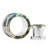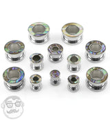 Abalone Shell Rimmed Screw on Tunnels Plugs