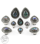 Sold in pairs (2 pieces) Double flare Abalone shell 10mm wearable surface 316L stainless steel plug Brass teardrop plate Hallow