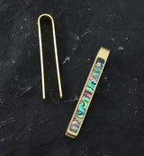 Abalone shell brass ear weights with a long, bar design. Handcrafted and polished. Must be 0G or bigger to wear. Height is approximately 76mm. Made from brass and abalone shell. Brass is not meant for long term wear. It may oxidize under extreme moisture conditions. Sold in pairs (2pcs).