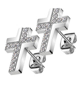 Abstract Cross Clear CZ Stainless Steel Stud Earrings
