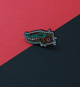 Floral alligator black enamel soft pins. Size is 1.25". Part of the artist series.