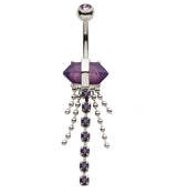 Amethyst Crystal Bead Chain Stainless Steel Belly Button Ring