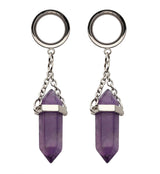 Amethyst Crystal Dangle Stainless Steel Tunnel Plugs