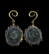 Sold in pairs (2 pieces) Raw amethyst NOTICE: This is the exact pair you will receive 6G or bigger to wear Handle with care Stalactite size: 45mm X 40mm