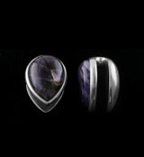 These Amethyst Stone Knuckle White Brass Ear Weights are sold in pairs and each piece weighs 27 grams. With a width of 22mm and a height of 28mm, they are designed for people with a stretched lobe size of 5/8" or bigger. The brass used for these ear weights is not meant for long-term wear and may oxidize under extreme moisture conditions. The amethyst stones are handcrafted, making them a mesmerizing jewelry addition. Great for healed piercings/lobes.
