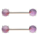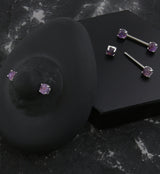 Amethyst Stone Prong Stainless Steel Nipple Barbell