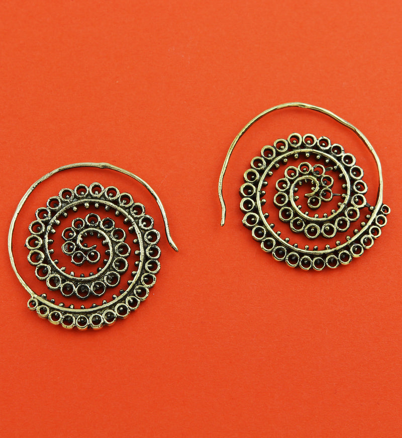 These Ammonite Swirl Brass Earrings/Hangers are handmade and sold in pairs (2pc). Each earring is lightweight, weighing about 2.8 grams and is made from casted brass. Each piece is handmade and unique in shape and size, but the approximate size is about 30mm x 30mm. Must be 18G (1mm) or larger to wear. Please note that brass is not suitable for long-term wear and may oxidize in high-moisture conditions. For healed piercings.