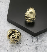 Skull shaped ear weights made from brass. They weigh about 31 grams each with a height of 28mm and a width of about 20mm. Size is 11/16" (18mm) so you must be 11/16" or bigger to wear. Brass is not meant for long term wear. May oxidize under extreme moisture conditions. Sold in pairs (2 pcs). For healed piercings.