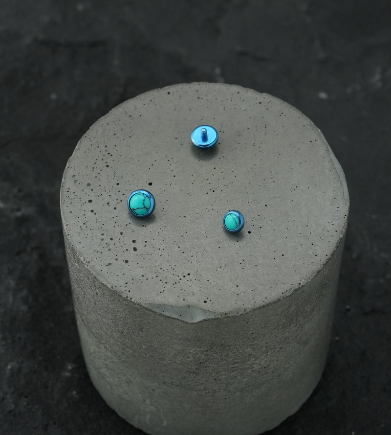 Turquoise howlite stone ends that are perfect for any piercing where you want the disk to sit flush with the skin! This piece comes in a 14G size and is made from ASTM F-136 titanium. Choose your disk size from 4mm or 5mm. Internally threaded. Sold individually.