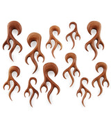 Add a natural vibe to your healed lobes with these Antler Saba Wooden Hangers, sold in pairs. Handcrafted from unique saba wood, each piece features its own distinct pattern and color. Available in sizes from 8G (3.2mm) up to 5/8" (16mm), these lightweight hangers bring a fun, earthy style to your look. Please note, sizing may vary slightly due to their handmade nature. Avoid direct sunlight and extreme moisture to keep them looking fresh.
