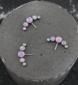 This high-quality threadless top is crafted from ASTM F136 titanium and accented with bezel set, side-facing, synthetic purple opal gems in an arched design. The top size is 13mm in length and 4mm in width, with a 25G pin. Perfect for those looking for a glamorous, strong and secure threadless piece. Sold individually (1 piece - top only).
