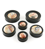 Areng Wood Plugs with Crazy Lace Agate Stone Inlay