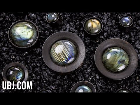 Sold in pairs (2pc) Double flare Areng wood Labradorite stone inlay NOTICE: Each piece is will be completely unique due to the nature of the stone We do our best to provide a matching set Wearable area: 12mm - 13mm -+