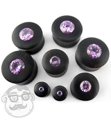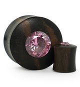 Areng Wood Plugs With Pink CZ Gem Inlay