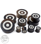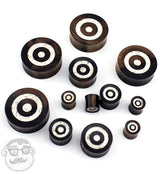 Areng Wood Plugs With White Target Stone Inlay