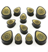 Areng Wooden Teardrop Plugs with Mandala Brass Inlay