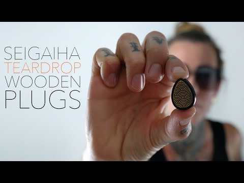 Sold in pairs (2 pieces) Double flare Teardrop shape For healed piercings Areng wood, brass Seigaiha inlay Pattern & color will be unique for each plug Sizes can vary + / - by 1mm Handcrafted