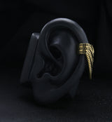 Golden brass ear cuffs with a pointed design that do not require piercings. Simply place along your outer ear and pinch to your desired fit. Height is 25mm and width is 15mm. Made from brass. Brass is not meant for long term wear. It may oxidize under extreme moisture conditions. Sold individually (1 pc).