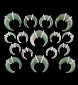 Sold as a pair, these Aventurine Stone Pinchers bring a splash of natural beauty to your healed lobes. Available in sizes from 6G (4mm) to 1/2" (12mm), each piece features a unique pattern and color, making your set truly one of a kind. We will do our best to find you a complementing pair. Four clear "O" rings are included for a secure fit. Please note, these are designed for healed lobes only and not for ear stretching.