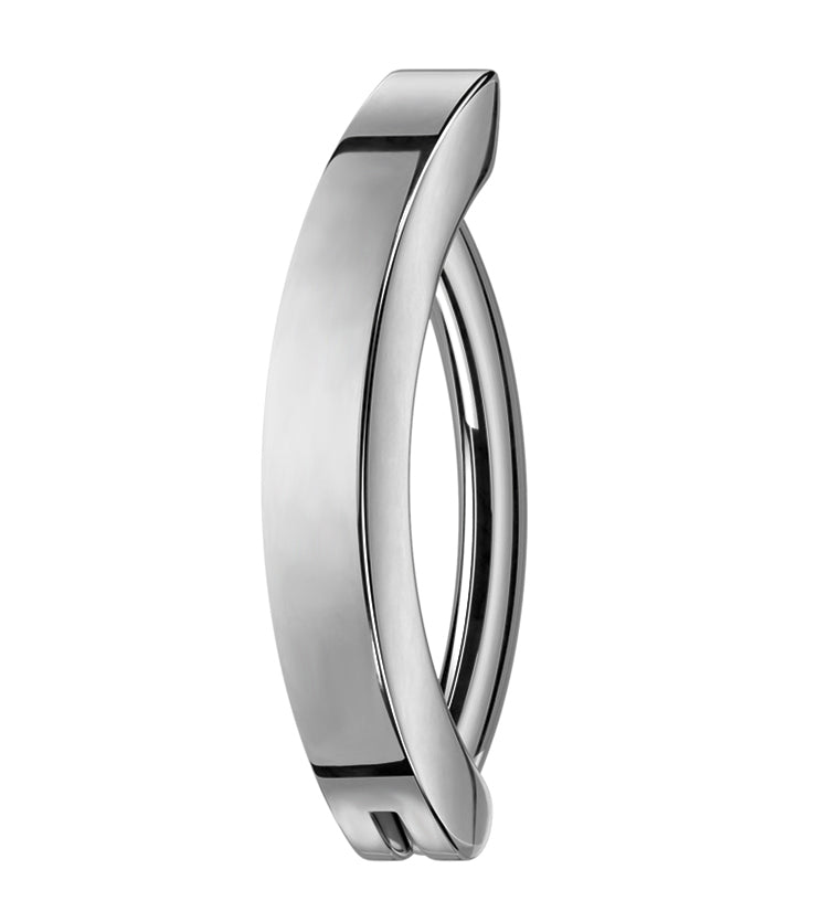 Simple belly button ring with a hinged design that showcases a sleek bar design. Size is 14G with 3/8" (10mm) or 1/2" (12mm) barbell lengths to choose from. It is made from durable ASTM F-136 titanium with a hinged design. The hinged design makes this piece easy to insert and click closed. Sold individually (1 pc).