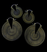 Sold in pairs (2pc) Size: 16G Small: Width: 35mm. Height: 46mm Large: Width: 62mm. Height: 72mm Small: 14 grams. Large: 39 grams each Made from brass. Sterling silver clasp Silver is not meant for long term wear May oxidize under extreme moisture conditions