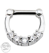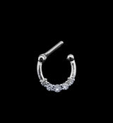 Sizes available: 16G, 14G Bar Length: 6mm. Full width: 12mm. Full height: 12mm Hinge opens and clicks closed 316L stainless steel Cubic zirconia gems