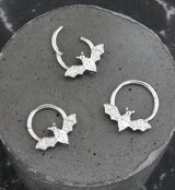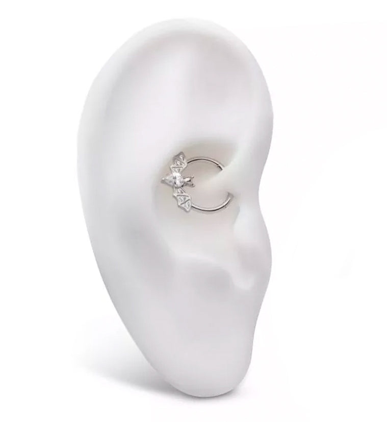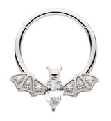 Hinged segment ring made from 316L stainless steel with a front-facing bat design that is full of clear cz gems. Size is 16G. Inner diameter sizes: 5/16" (8mm) and 3/8" (10mm). The hinged design makes this piece easy to insert and remove. Sold individually (1pc).