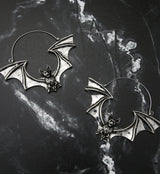 Vampire bat wing plug hoops. They have a 316L stainless steel post and are 20G. These styles are made to fit in any eyelet/tunnel style of plugs but can also be worn in normal ear piercings. Size is approximately 77mm x 63mm. Sold in pairs (2 pcs). For healed lobes/piercings.