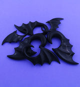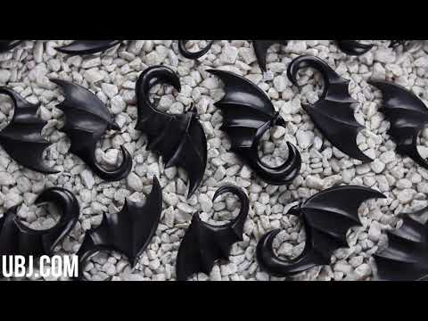 Enhance your style with this unique pair of Batwing Horn Spiral Hangers. The 8G/3mm to 5/8"/16mm hangers feature a pattern and color that may vary due to the nature of the horn. The 8G hanger measures 25mm wide by 50mm high, while the 6G, 4G, 2G, 0G, 00G, 7/16", 1/2", 9/16", 5/8" hangers measure 30mm wide by 55mm, 60mm, 60mm, 62mm, and 66mm high respectively.