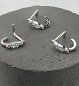 Pretty piece for your nose piercing! This curved nose ring is filled with clear cz gems in both a round and marquise shape. Made from 316L stainless steel. Size is 18G. Length is 5/16" (8mm). Sold individually (1 pc).
