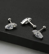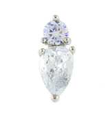 Barbell with a dual cz gem design on the end consisting of one round rainbow cz gem and one clear teardrop cz gem. Made from 316L stainless steel and externally threaded. Cool option for cartilage or tragus piercings! Size is 16G with a bar length of 1/4" (6mm). Ball size is 2.5mm. Sold individually. For healed piercings.