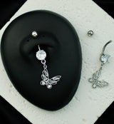 Beaded Butterfly Clear CZ Stainless Steel Belly Button Ring