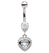 Beaded Heart Clear CZ Dangle Stainless Steel Belly Button Ring