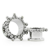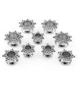 Sold in pairs (2pc) 316L stainless steel Length: 10mm Wearable area: 6mm Pick from 0G - 5/8" Brass bead rim Screw on backs Externally threaded